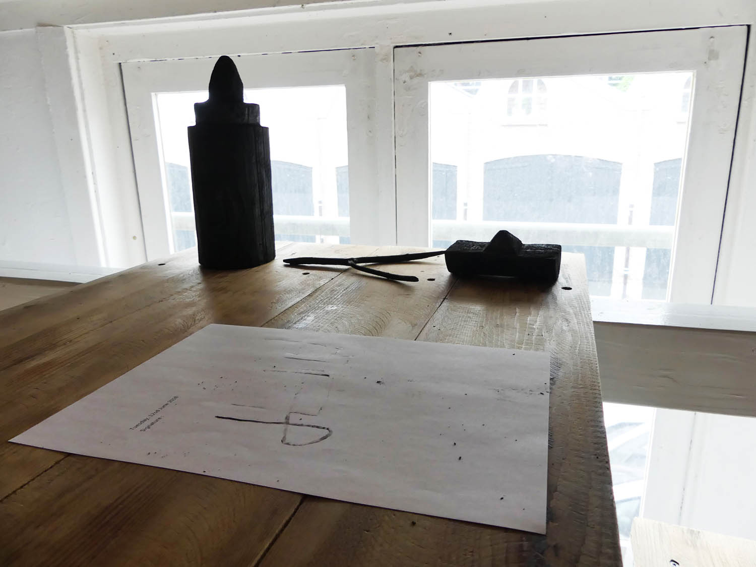 Ces objets calligraphiques en charbon, disproportionnés, cassants, à prendre à deux mains, change notre rapport à l’écriture. Ils nous invitent à réfléchir à l’importance d’une trace sur un papier. Celle de signer, de s’engager, de mesurer les conséquences d’un geste.